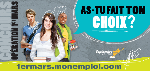 Academos va contribuer pour une deuxième année consécutive à la promotion du site Internet Opération 1er mars. Cette initiative s’adresse aux quelque 100 000 jeunes et adultes qui doivent s’inscrire à un programme de formation professionnelle au secondaire, à un programme de formation technique au collégial ou encore à un programme universitaire avant le 1er mars 2013.