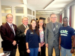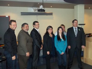 Étaient présent Léo Bureau-Blouin, député Laval-des-Rapides, Parti québécois, adjoint parlementaire à la première ministre (volet jeunesse); Suzanne Proulx, députée de Sainte-Rose Parti québécois, Vice-présidente de la Commission de la santé et des services sociaux, adjointe parlementaire à la ministre responsable de la Condition féminine; Louise Lortie, présidente de la Commission scolaire de Laval; Lucie Hill-Larocque, conseillère municipale Auteuil, conseillère associée au comité exécutif de Ville de Laval; Catherine Légaré, présidente fondatrice d’Academos Cybermentorat et Melle Arsenault, du Collège Laval, lauréate 2012 d’une bourse de 500 $.