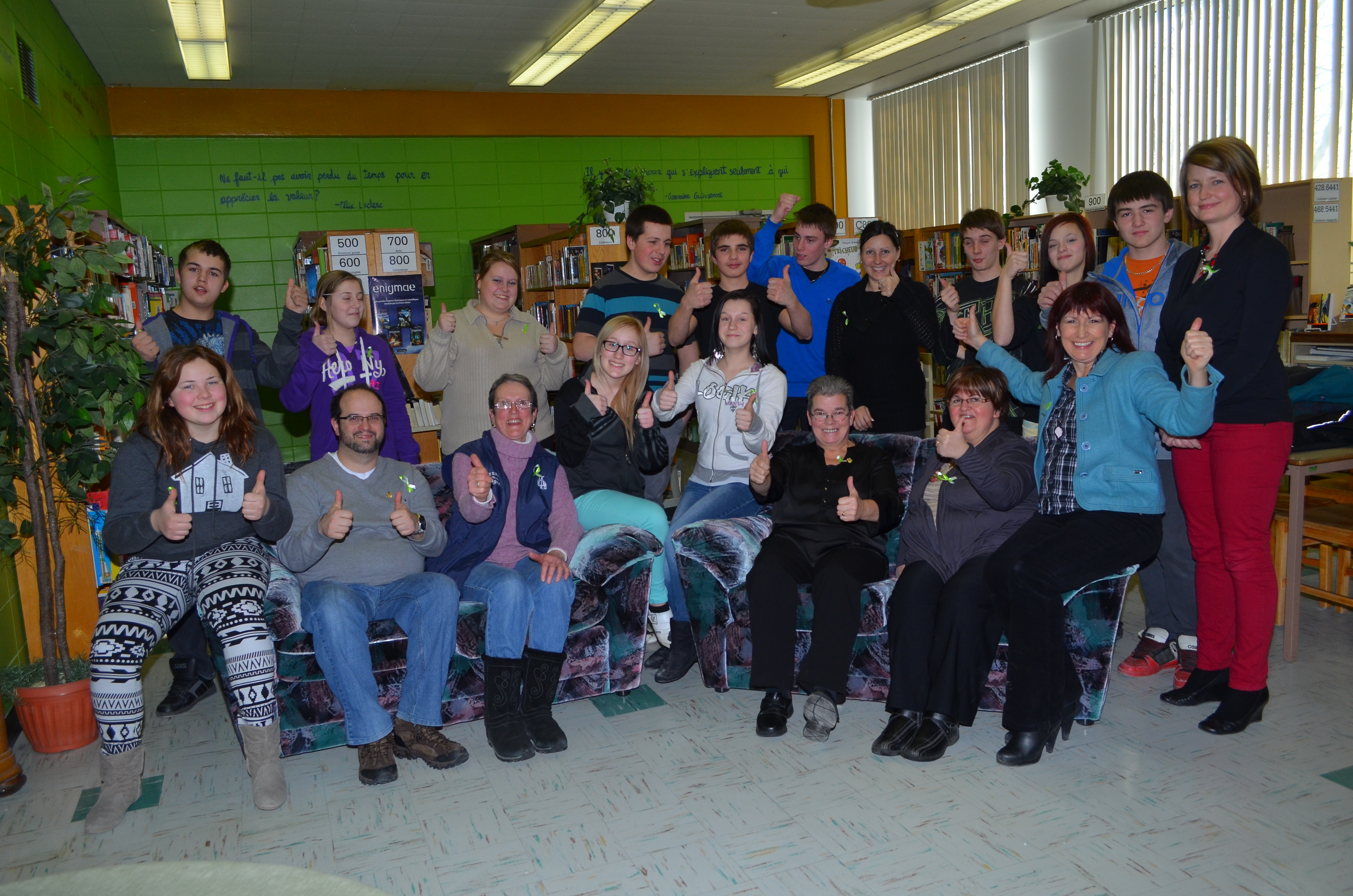 Étaient présents : Doris Lavoie, mairesse d’Hébertville,; Danielle Munger commissaire à la Commission scolaire Lac-Saint-Jean Est; Jean-Michel Gobeil, agent de participation citoyenne au Regroupement Action-Jeunesse 02; Denyse Gagnon, cybermentor; Vicky Gagnon, récipiendaire d’une bourse Accroche-Cœur en 2012, Karine Michaud enseignante et ses étudiants de secondaire 3.