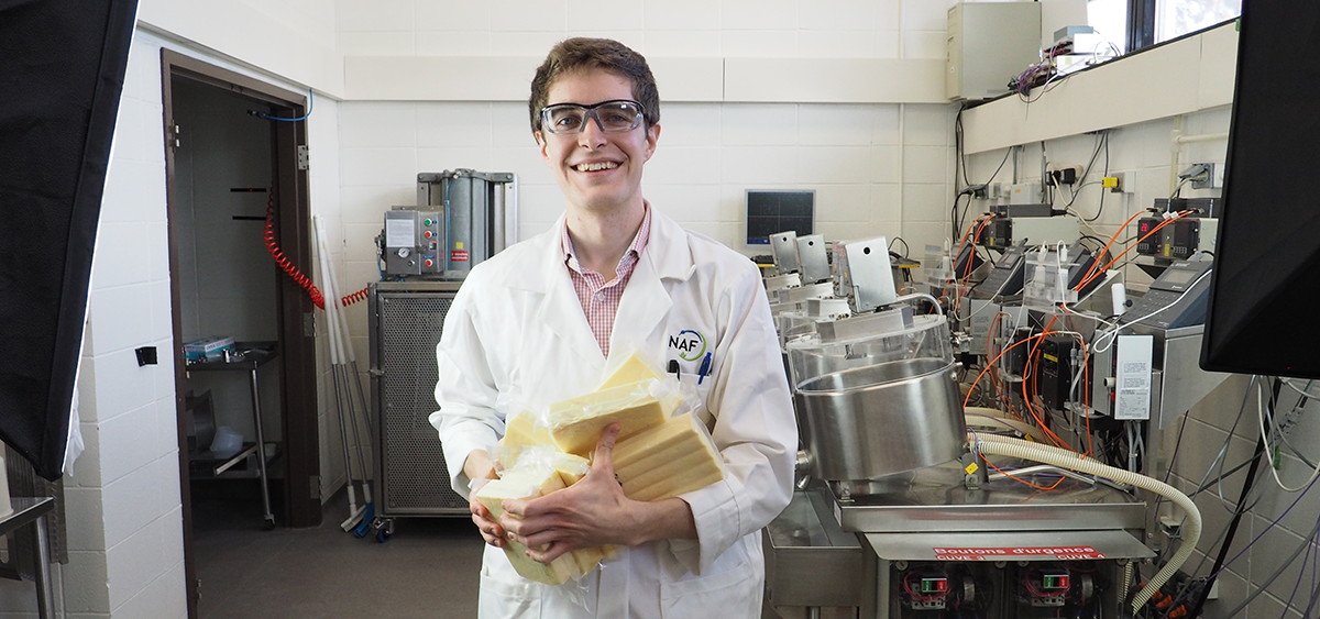 Julien Chamberland est probablement le plus grand passionné du fromage qui existe! Tellement qu'il souhaite démarrer son entreprise de consultation en fromagerie et qui sait un jour avoir sa propre fromagerie. Entre temps, il complète sa maîtrise en sciences des aliments à l'Université Laval. Découvre toute l'histoire.